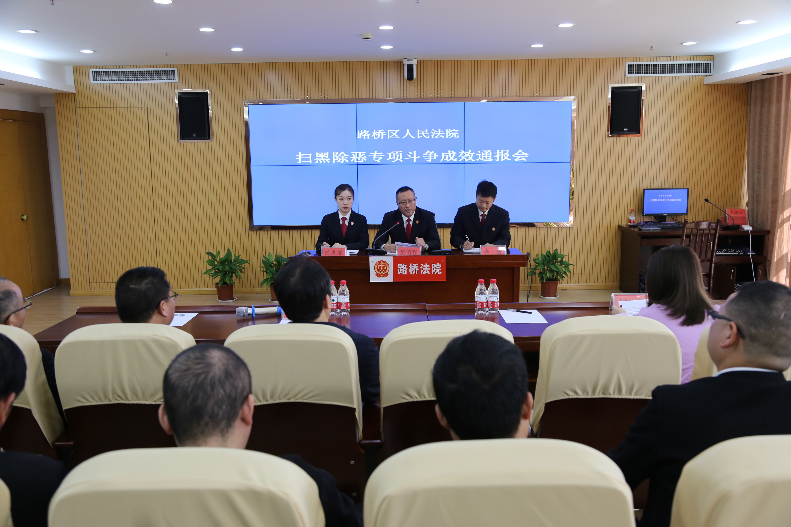 近日,台州路桥区法院召开新闻发布会,通报了该院开展扫黑除恶专项斗争成效。当地媒体记者和部分人大代表到会。(通讯员 陈敏 高贝)