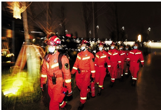 此次核心区安保任务中,长河站消防队共出动10人,以2人为一小组,随身携带微型灭火器等用品,对核心区内的6个点位进行来回巡逻,“以防烟花燃放后的碎屑引燃周边草木、引发小型火灾”。晚上8点左右,随着烟花秀的落幕,围观人群纷纷散去,但王兴和队员们的使命却并未结束。他们火速列队,步伐整齐,对核心燃放区一带进行隐患排查,直到确保没有安全事故发生,才离开现场。
